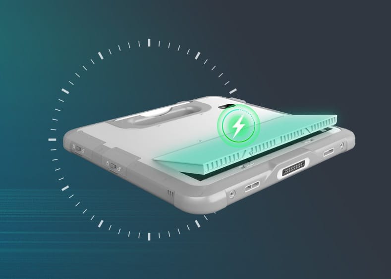 TBMD-100K jest wyposażony w baterię wewnętrzną i system podwójnej baterii z możliwością wymiany podczas pracy, co zapewnia ciągłą pracę podczas dłuższych zmian. System ten minimalizuje przestoje, umożliwiając pracownikom służby zdrowia szybką wymianę baterii bez wyłączania tabletu, gwarantując nieprzerwaną pracę w krytycznych momentach.